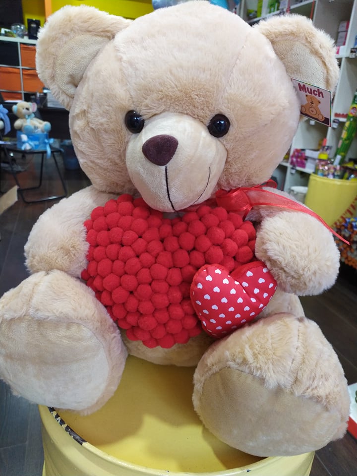 PLUSH BEAR WITH HEART POM POM 45 CM